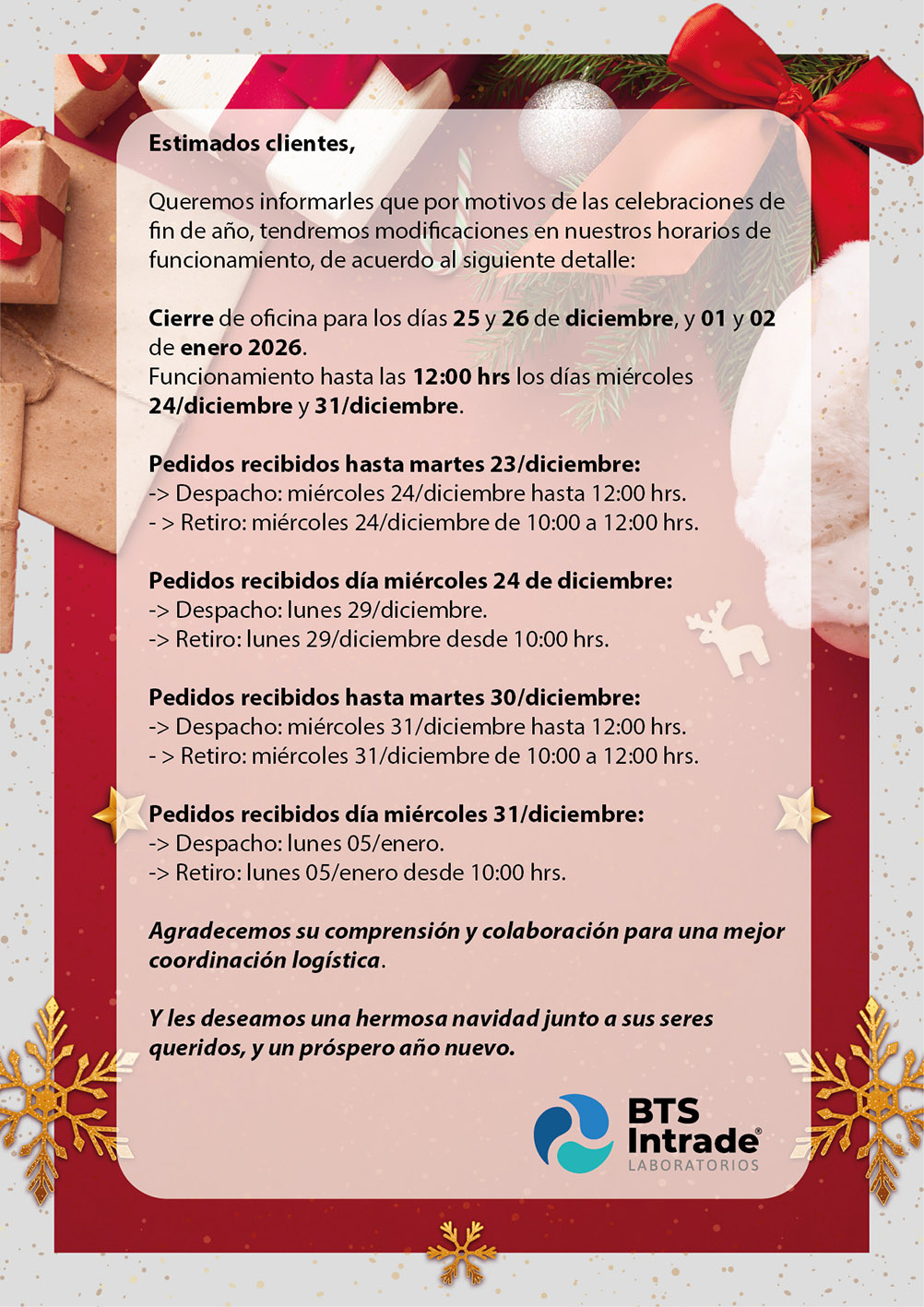 Nuevos Desinfectantes BTS Intrade Laboratorios De acuerdo a las nuevas contingencias del mercado y como